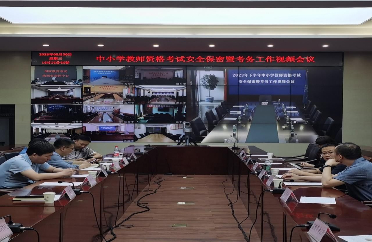由教育部教师工作司主持召开的2023年下半年中小学教师资格考试安全保密会议暨考务工作视频会议》于8月30日下午2点30顺利召开。我省教育厅、省教育考试院相关领导及各考区负责统一在省教育考试院国家教育考试指挥中心参会。我校考区负责人孟贤军副处长和教务处袁显峰老师应邀参加。