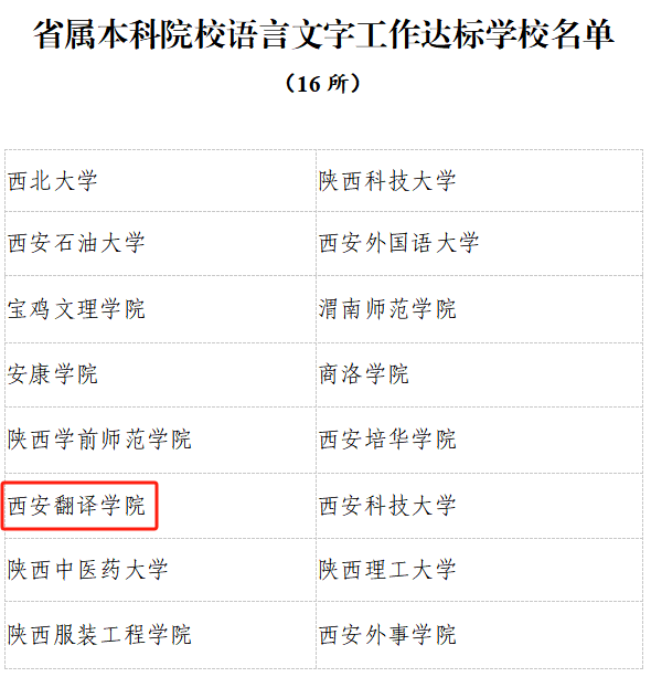 近日,陕西省教育厅办公室发布了《关于省属本科高校语言文字工作达标验收情况的通报》,结合学校自评和上报材料及实地核查等情况,研究认定了西北大学等16所高校(名单见附件)为陕西省语言文字规范化达标校,我校名列其中。