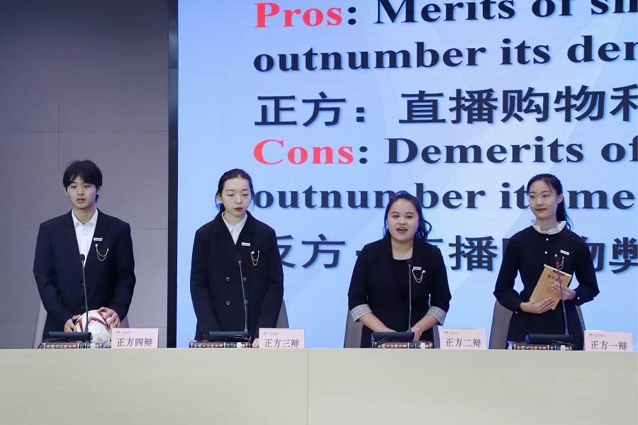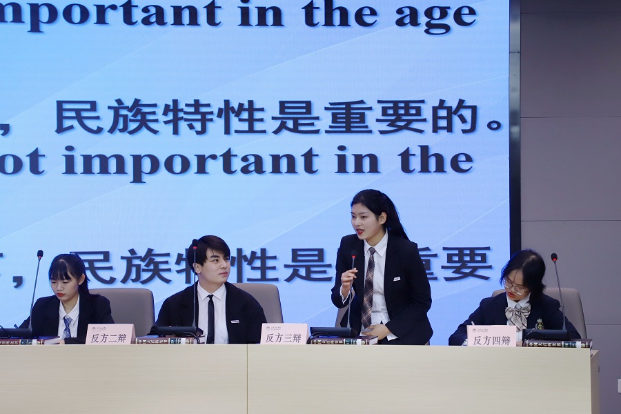 非英语专业与英语专业各有六支队伍进入辩论赛决赛。非英语专业组2018级以“全球化背景下,民族特性是否重要"为辩题,选手们思维灵活、妙语连珠,利用完备的知识体系与队友默契配合,巧妙地阐释了辩题内容。英语专业组2020级选手围绕“出国留学的利弊问题”展开论述,双方各执己见、据理力争,以流利的口语表达和清晰的语音语调分析辩题,其现场发挥沉着冷静,展现了他们敏捷的应变能力与扎实的外语功底。英语专业组2019级队伍针对“直播购物的利与弊"进行辩论,辩手们紧扣主题,将理论与现实结合,逻辑缜密地诠释己方观点,其精彩的表现博得观众阵阵掌声。