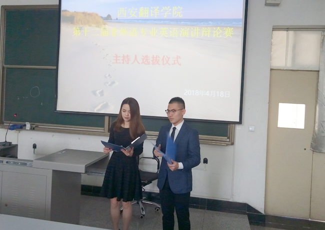为全面营造全外语氛围,激发学生学习外语的热情,为优秀主持人才搭建展示平台­,2018年4月18日下午,我校第十二届非外语专业英语演讲辩论赛主持人选拔赛在711T教室如期举行。经各二级学院推荐,共有36位学生参加本次选拔,高级翻译学院张睿,英文学院刘佳担任评委。