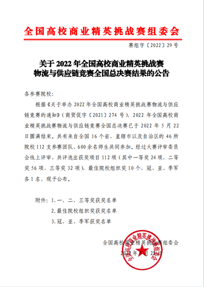 5月22日,全国高校商业精英挑战赛物流与供应链竞赛全国总决赛落幕,我校国际商学院学生荣获3项二等奖的好成绩。