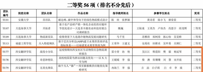 本次物流与供应链比赛从2021年11月的知识赛、到2022年4月份的方案入围赛、再到5月21-22日的总决赛,参赛学生在整个过程中体会到了团队协作的重要性。参赛过程中,指导老师精心的指导以及学生们长期不懈、孜孜不倦地调整修改方案,为本次比赛获奖打下了坚实基础。