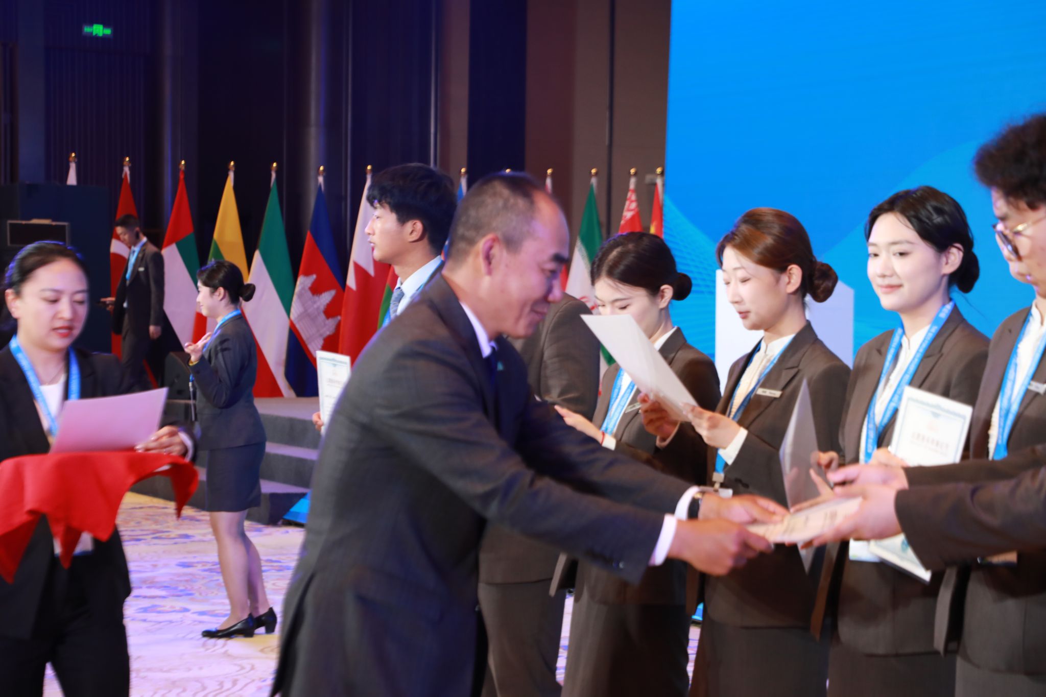 此次参与国际会议服务的30名优秀学子(如刘颖、江星磊、郭冰倩等),均来自英文学院和国际语言文化学院。他们在会议保障工作中展现了扎实的语言功底、卓越的跨文化沟通能力及高度的政治责任感,全部获颁荣誉证书。企业特别提到,早在2023年中国-中亚峰会期间,学校选派的10名学生就已凭借过硬的专业素养赢得了参会国家的赞誉,此次再度合作,进一步彰显了学校在高端涉外服务人才培养上的持续创新与实践成效。
