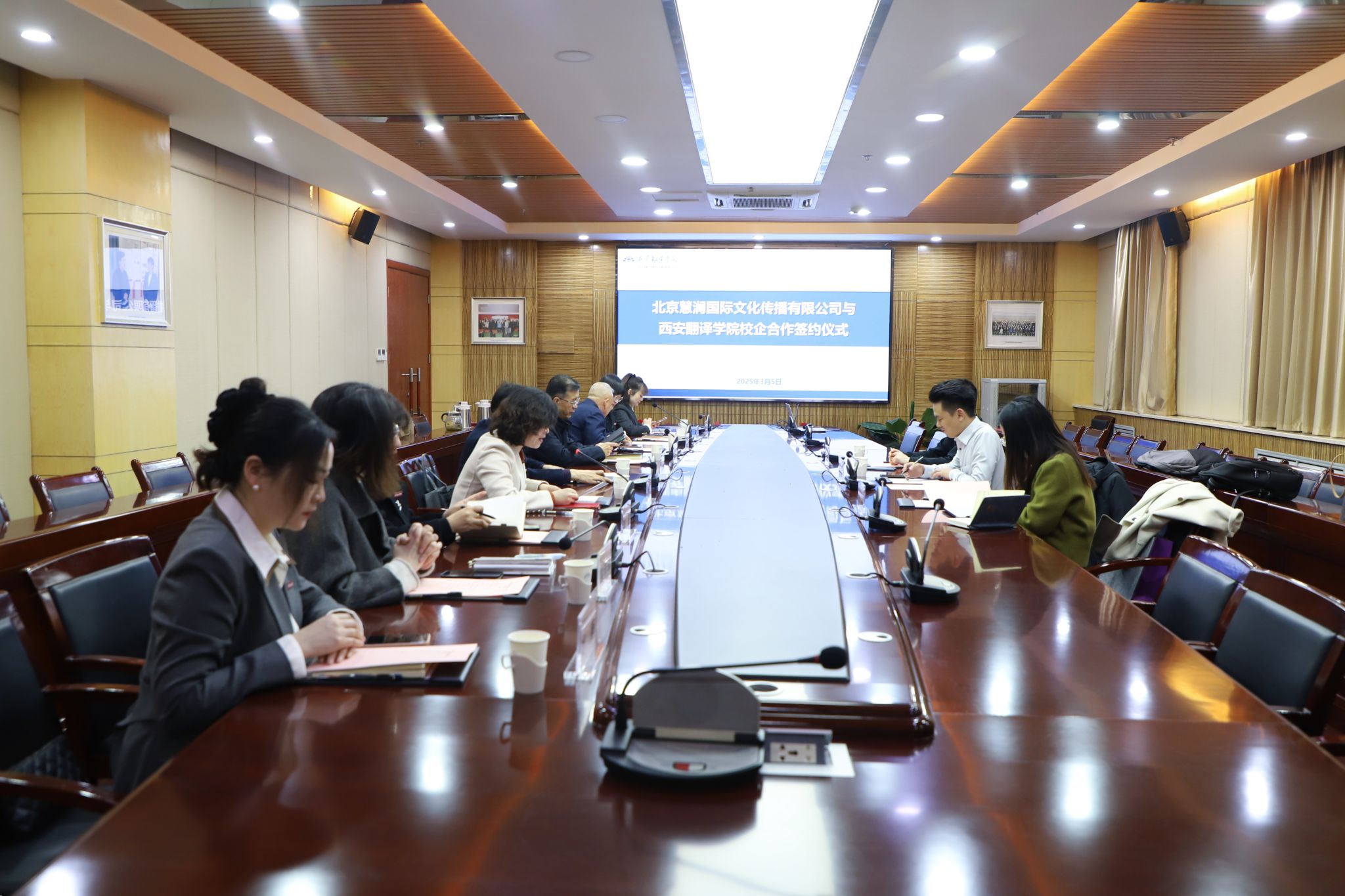 3月5日上午,我校与北京慧澜国际文化传播有限公司(以下简称“慧澜国际”)在1号综合楼会议室(二)举行校企合作签约仪式。慧澜国际总经理陈旭、学术出版经理王坤,宽邦科技校企合作事业部总监梁文忠出席仪式。副校长武忠远、王利晓,英文学院及国际语言文化学院相关领导、西安翻译协会副理事长方馨参加。科研处副处长张莹主持。