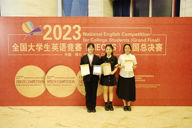 第二十二届全国大学生英语竞赛(NECCS)全国总决赛于8月在宁夏银川市举行。我校学生在本届大赛中取得大学生风采大赛一等奖2项;英语演讲赛二等奖2项,三等奖1项;辩论赛三等奖1项,获奖总数创历史新高。