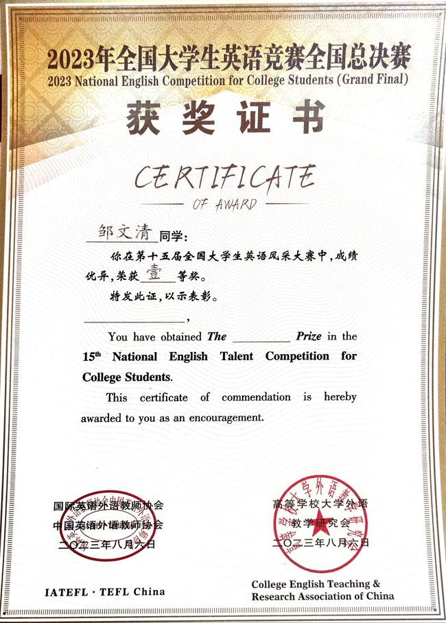 喜报|西译学子在2023全国大学生英语竞赛(NECCS)全国总决赛中喜获佳绩
