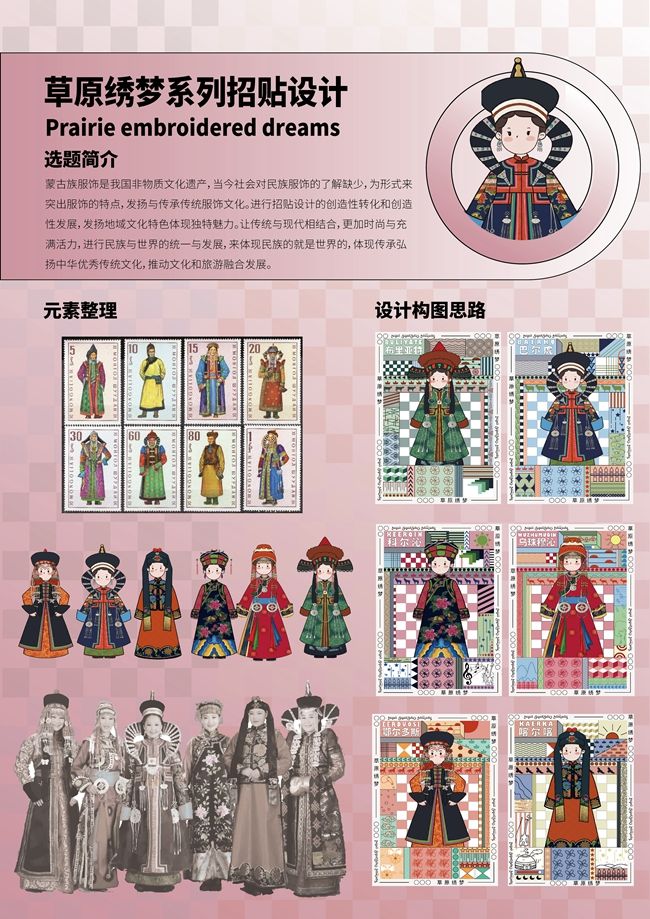 王静雯同学的作品《“草原绣梦”系列招贴设计》获得本科组国赛三等奖和省赛一等奖